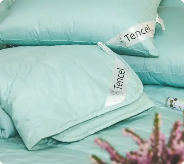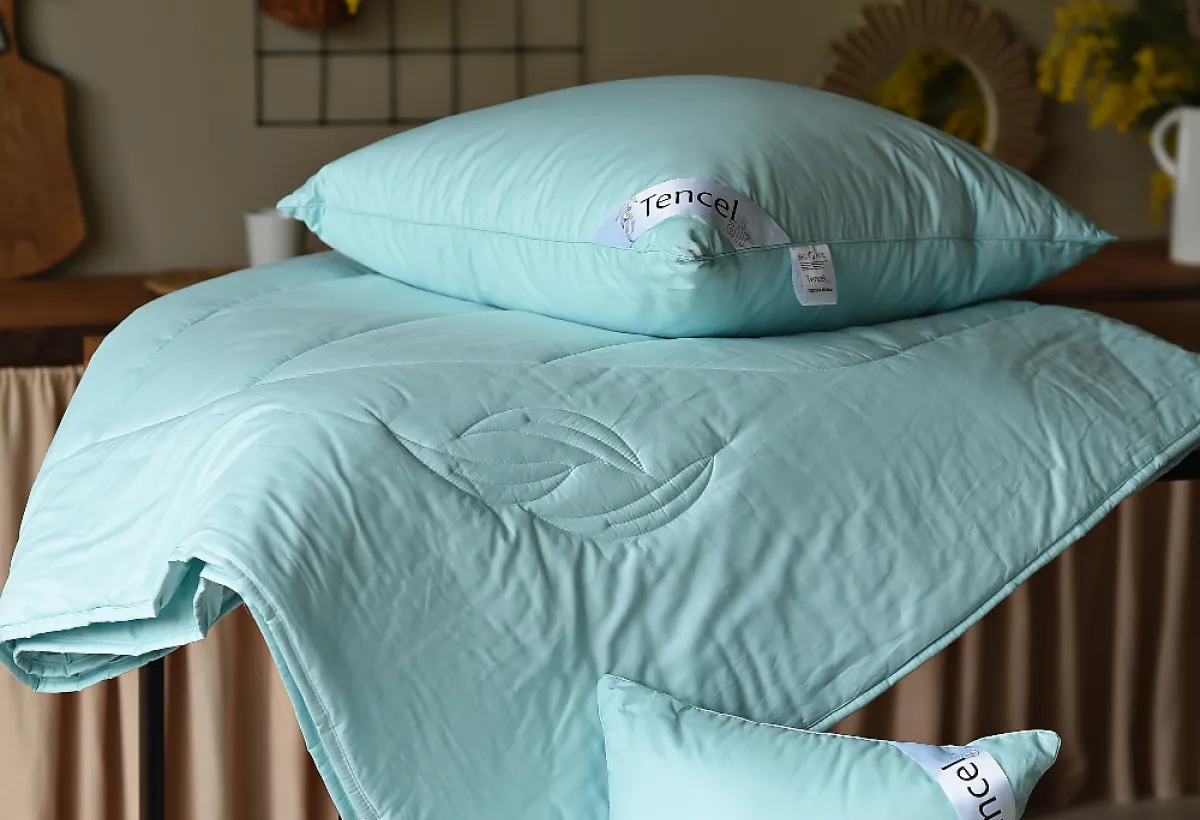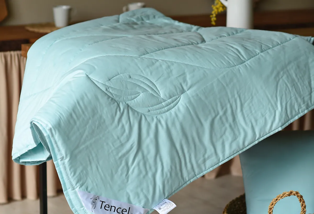 Тенцель — натуральное волокно с бактериостатическими свойствами. Благодаря высокому коэффициенту испарения влаги во время сна снижается рост бактерий. Тенцель сочетает в себе мягкость и гладкость шелка, комфорт хлопка. Одеяло с наполнителем из термополотно с добавлением волокон тенцеля — практично в уходе, позволяет выдерживать многократные стирки.