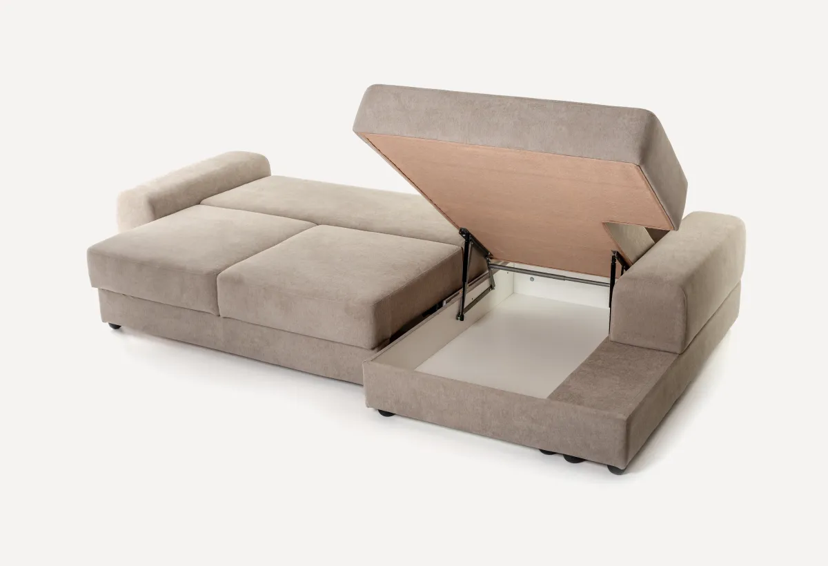 Каркас: ДСП 16 мм + сосновая фанера 15 мм. Сиденье: Пружина «змейка» + слои жесткого поролона (основной ST3540 100мм и усиленный ST3542 40мм). Мягкость: Все обшито холконом и синтепоном, подушки из суперпуха (шарики). Дно: Закрыто файбертексом (техническая ткань). Ножки — пластиковые треугольные или «стакан». Ящики: Из белого ЛДСП.