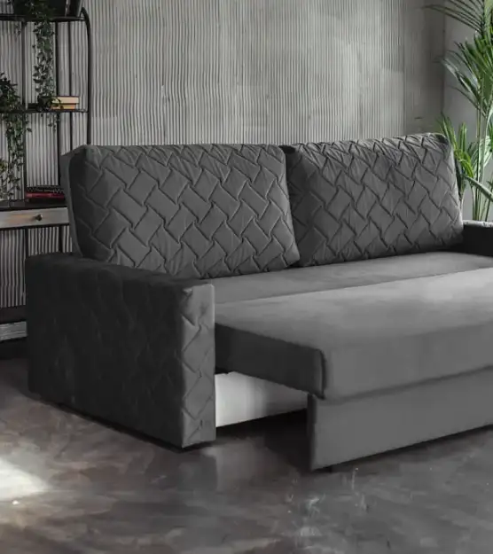 Rosa диван имеет габариты (ВхШхД) 980х2300х1070 мм, что делает его идеальным для размещения в гостиных, спальнях и даже небольших комнатах. Благодаря своим компактным размерам, он легко впишется в любое пространство, не занимая много места. Диван оснащен механизмом трансформации тик-так (пантограф), что позволяет использовать его как полноценную кровать с размером спального места 1500х2000 мм. Это делает его отличным выбором для гостей или для ежедневного использования. Короб для белья обеспечивает дополнительное место для хранения, что особенно полезно в небольших квартирах.