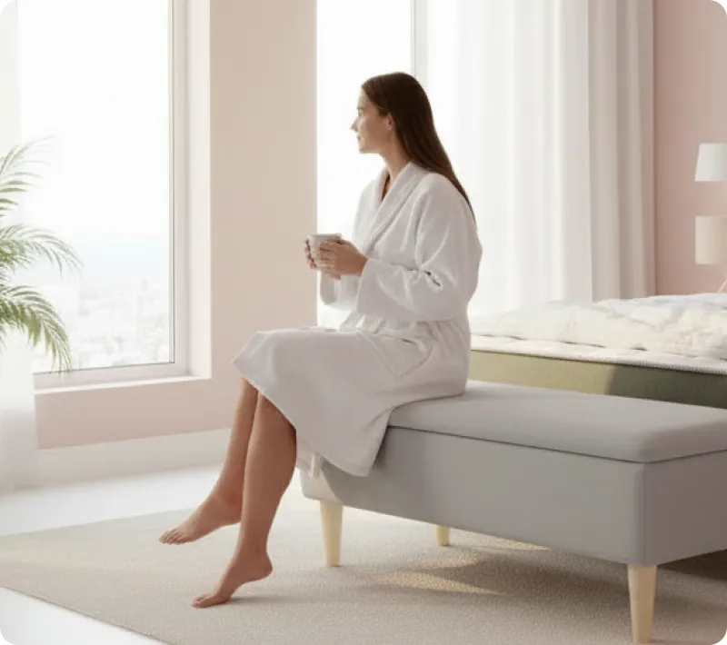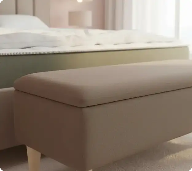 • В спальне банкетка Sarma станет уютным местом для утреннего кофе или вечернего чтения, а также практичным хранилищем для постельных принадлежностей.